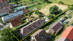 Predná časť v rozlohe 1506m² - stavebný pozemok s rovinatým priestorom, na ktorom stojí dlhšiu dobu neužívaný dom určený majiteľom skôr na zbúranie (no niekto by v ňom mojol nájsť potenciál na rekonštrukciu, chatu alebo priestor pre všetko potrebné pre záhradkára a pestovateľa).